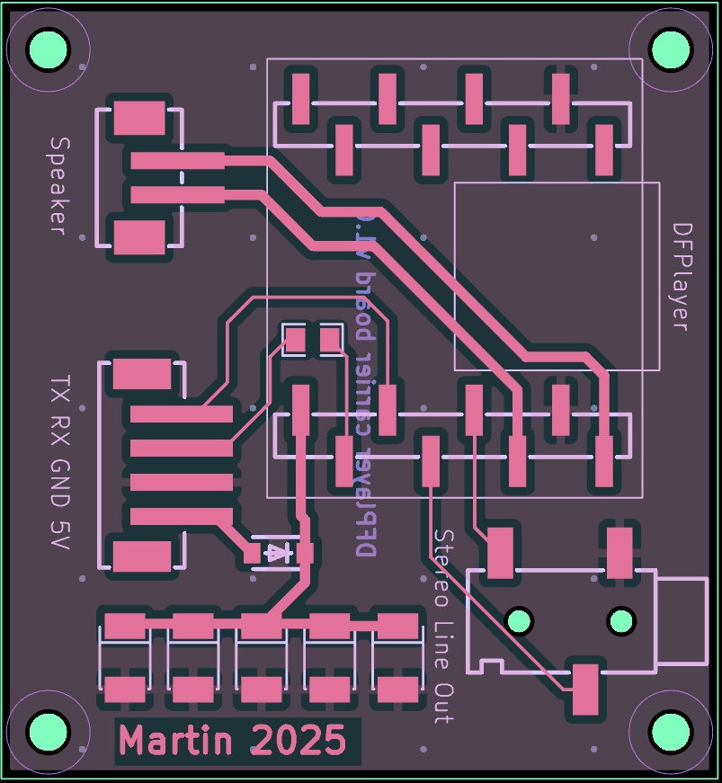 A compact, SMD-based motherboard for the popular DFPlayer Mini MP3 module, designed using the atopile hardware description language.